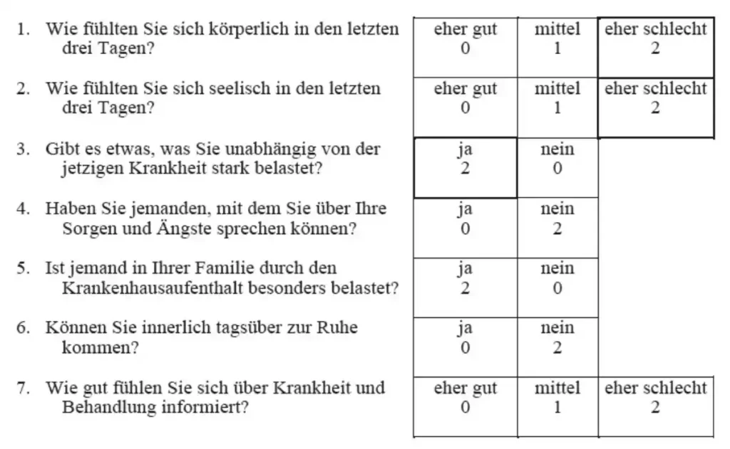 Die Entscheidung, ein psychoonkologisches Gespräch führen zu wollen, liegt immer ganz bei Ihnen. Wir richten uns grundsätzlich ganz nach Ihren individuellen Bedürfnissen. In den Kliniken erheben wir den Bedarf zusätzlich ganz objektiv mit kurzen Fragenbögen, z.B. mit dem Stressthermometer oder dem Hornheider-Fragebogen:
